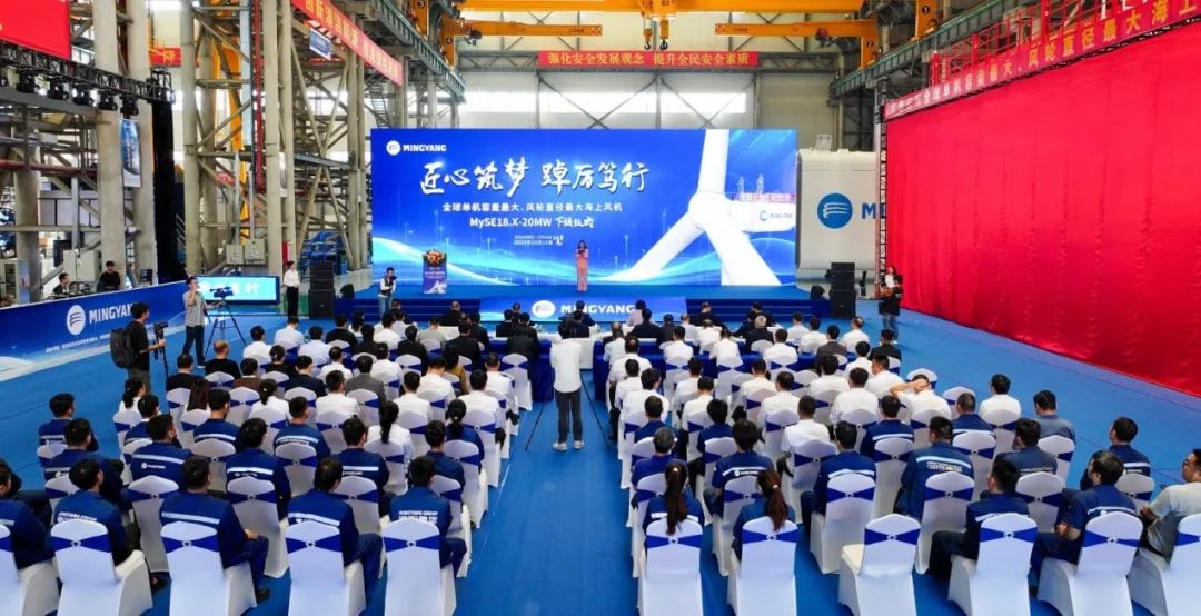 MySE18.X-20MW機組的下線,是明陽堅持技術創新,始終將推動海上風機容量大型化、高質量發展視為己任的最好詮釋。明陽十年一劍,對大容量機組創新求索的腳步從未停歇,并一步一個腳印,始終穩健。